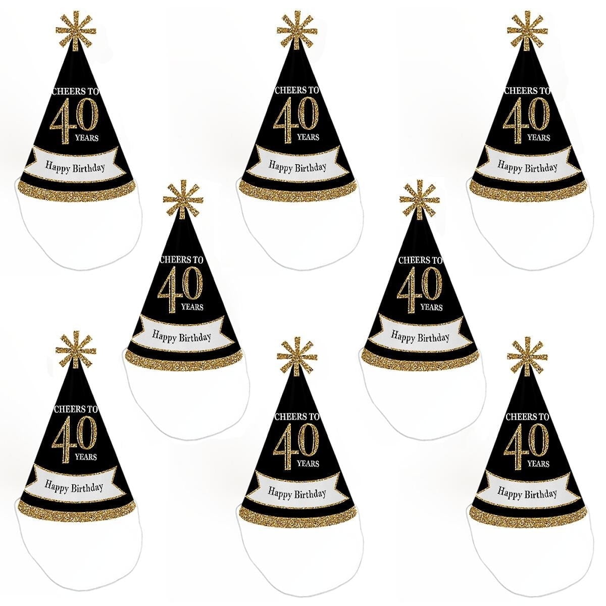 Big Dot Of Happiness Adult 40th Birthday Gold Cone Birthday Party Hats For Adults Set Of 8 Walmart Com