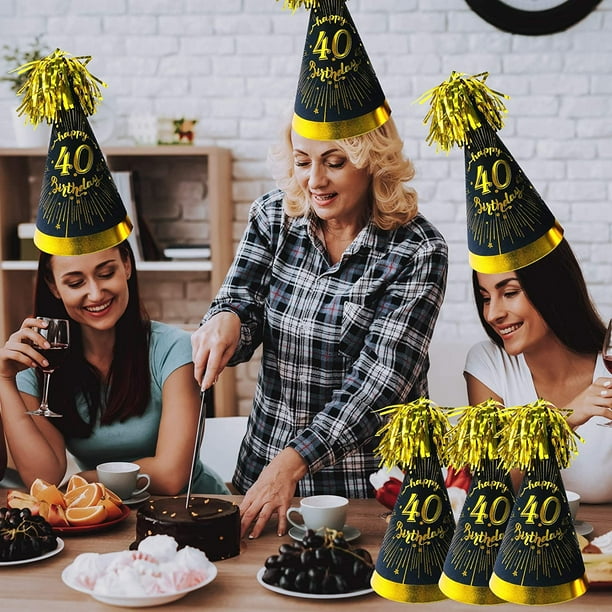 40th Birthday Decorations Gold Hats Cone Hats With Gold Glitter Cardstock Black Gold Theme 40th Birthday Party Supplies 40th Birthday Party Favors 6 Count Walmart Ca